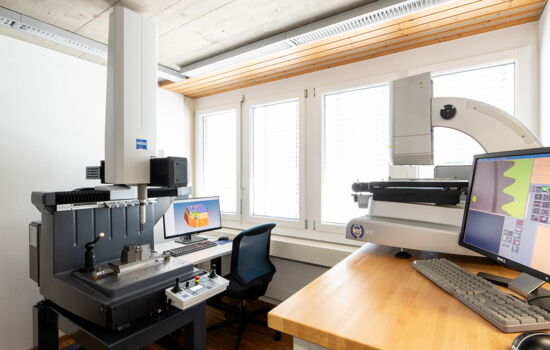 Verbindliche QS-Protokolle ermöglichen unseren Mitarbeitern Spritzgussteile mit gleichbleibender, hoher Qualität herzustellen. Nebst den üblichen Messmitteln stehen uns eine taktile 3D-Messmaschine (Zeiss) sowie eine hochgenaue berührungslose optische TESA-Messmaschine zur Verfügung, welche vor allem für komplexe Kleinteile eingesetzt wird.
